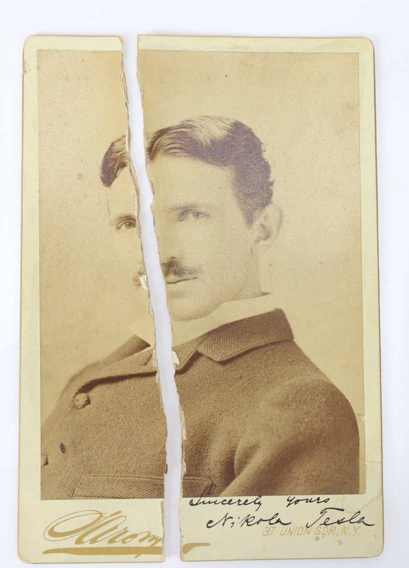 Few figures symbolize technological transformation as vividly as Nikola Tesla. Born in 1856 in what is now Croatia, Tesla became one of the most influential inventors of the modern age, pioneering developments in electrical engineering that laid the groundwork for the power systems that run cities, industries, and homes across the globe. Tesla’s work on alternating current fundamentally reshaped the electrical landscape of the late nineteenth century. At a time when direct current systems dominated early electrical infrastructure, Tesla’s alternating current technology proved capable of transmitting power across far greater distances. This innovation allowed electricity to move beyond small urban networks and into regional and national grids, making large-scale electrification possible. Because Tesla was more focused on invention than on self-promotion or documentation, authentic autographs from him are not as common as those of many public figures from the same period. Signed photographs are especially desirable. The cabinet card format, popular in the late nineteenth century, was often used for formal portraits and offered a dignified way for notable individuals to present their likeness. A signed Tesla cabinet card therefore occupies a unique place in the autograph world. It represents not only the signature of a brilliant inventor but also a visual artifact of the era in which electricity itself was transforming society. For collectors of scientific history, technology, or rare autographs, such pieces embody the moment when modern electrical life began.